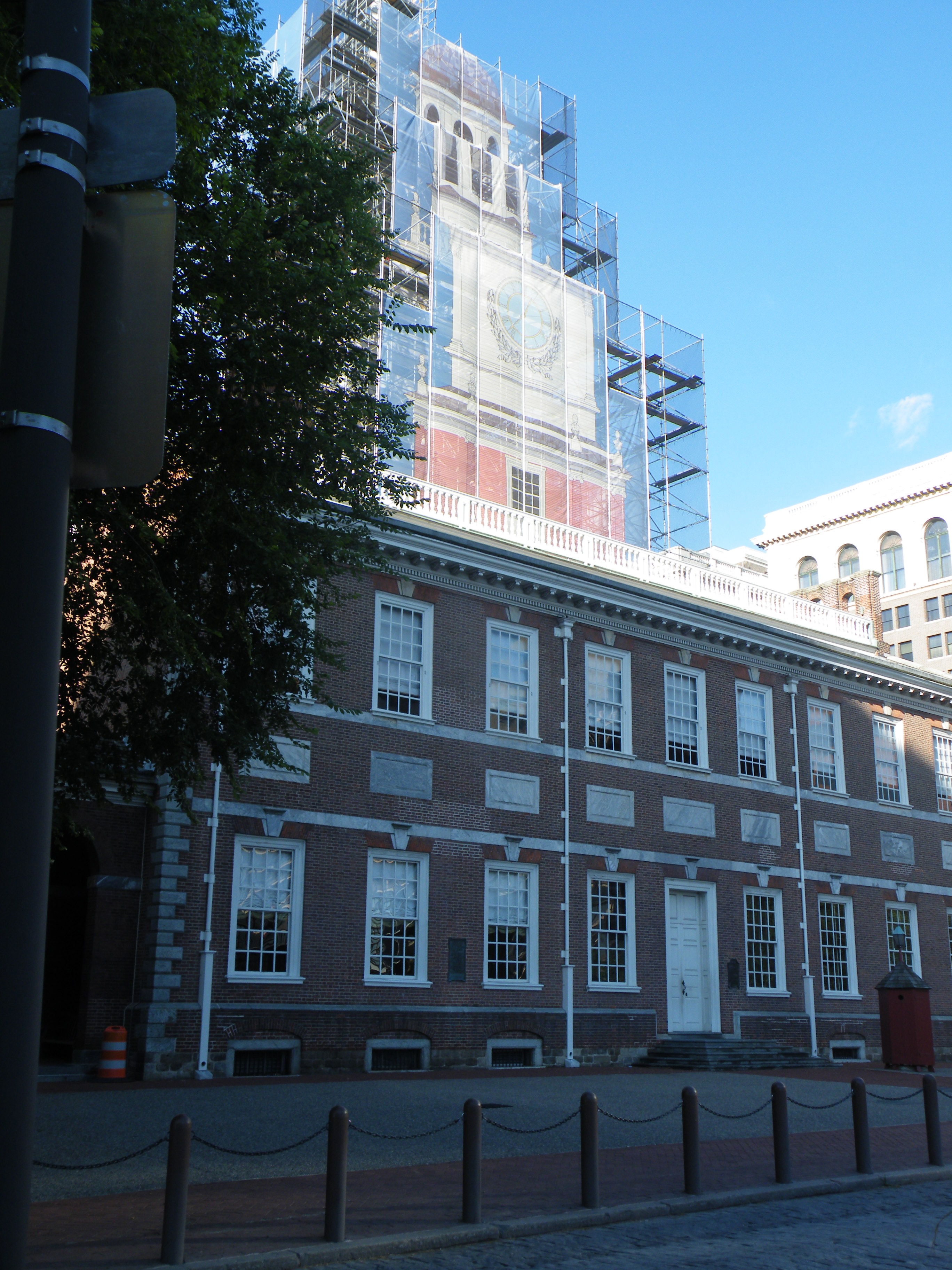 Some things haven’t changed in Philadelphia since 1779. It’s still pretty boisterous; Kate and I took these shots Sunday morning, and we saw a fair number of broken beer bottles that spoke to the previous night’s revelry. More importantly, the city’s done a decent job of preserving a lot of the historic buildings, though admittedly the recession hasn’t been kind to businesses there. Of course, there are plenty of differences, from power lines and cars to nearby skyscrapers and the on-ramp to I-95. But the city still has enough historic character to inspire.