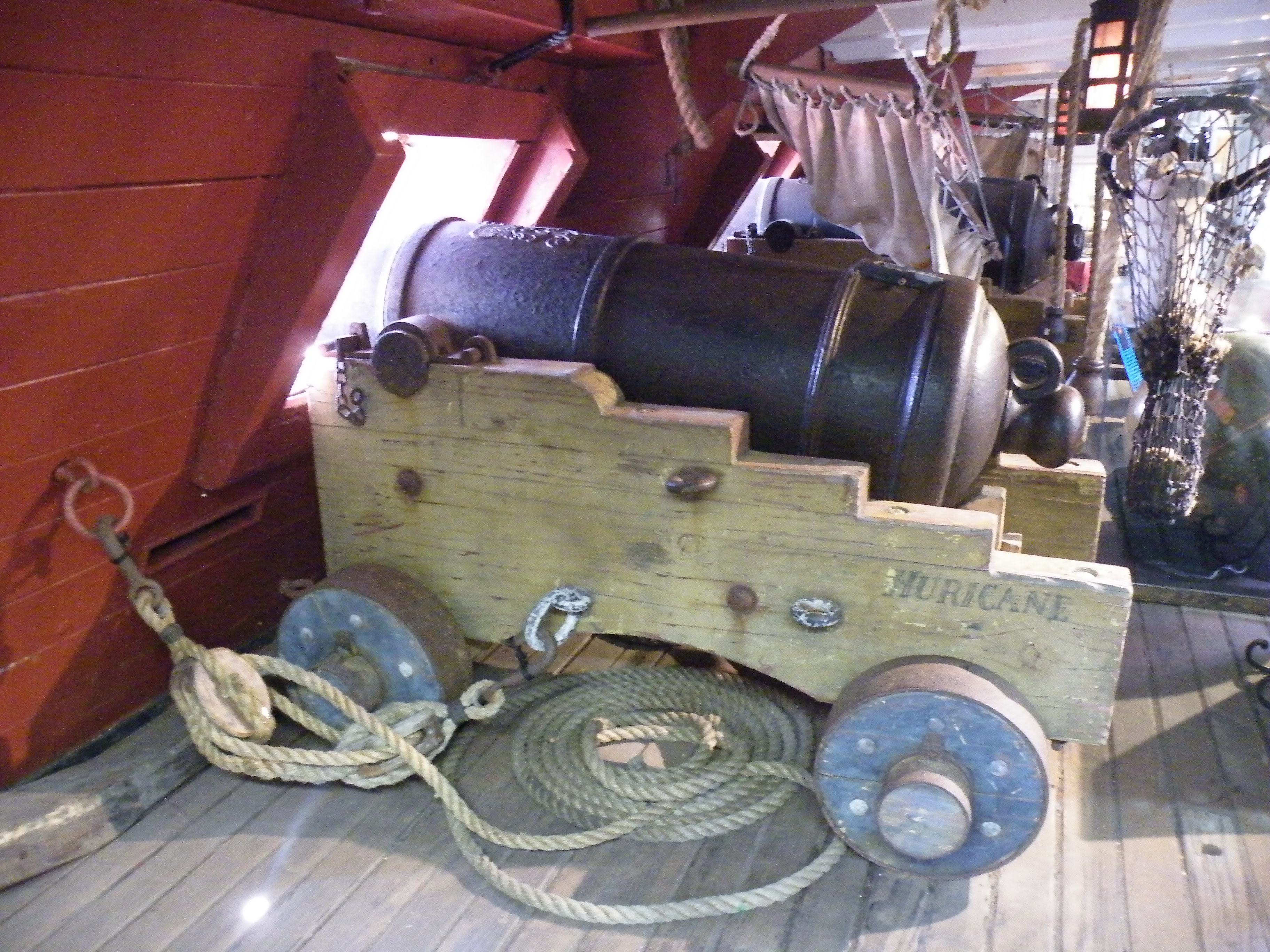 Sure, she’s a replica. The capstan — that big winch used to haul anchor — wasn’t attached to anything. The below decks area had museum displays and boasted a few nice flat screen TVs. There was even a wheel below decks to actually steer the ship while they were filming above, to make it look like the actors were actually doing the driving.