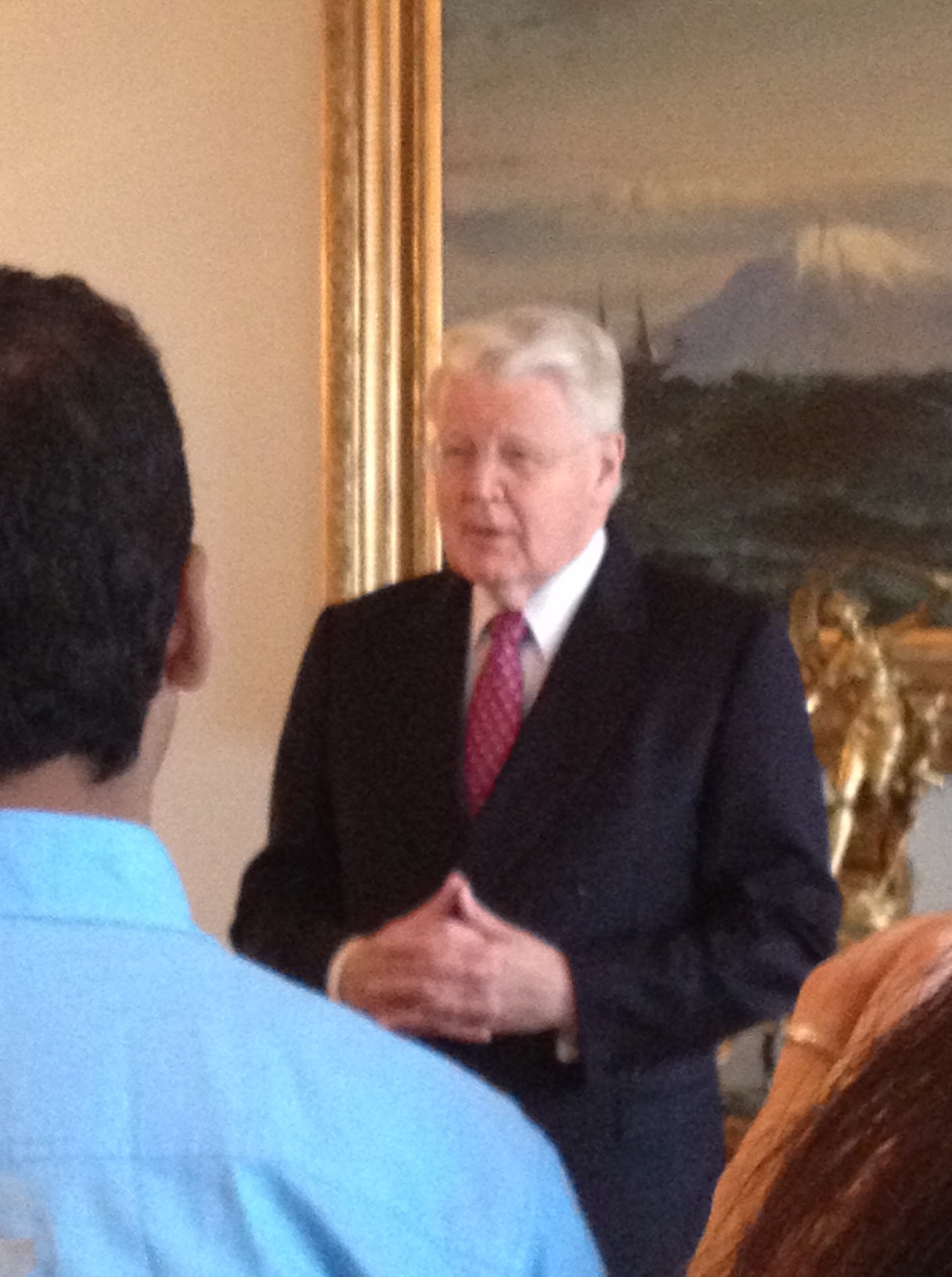 That pride is evident from the top down in modern Icelandic society. The retreat delegates and partners were guests of President Olafur Ragnar Grimsson at his historic home, Bessastadir, on Friday. Yeah, we got to meet Iceland’s president. I think it shows the nation’s interest in literature that President Grimsson not only threw us a little soiree, but spoke eloquently, and without notes, on his nation’s literary heritage for a good 20 minutes. And he then hung out for nearly the entire time we were there. Sure, it’s a small country, but the man’s a national head of state. And he knows his nation’s literature, both past and modern.