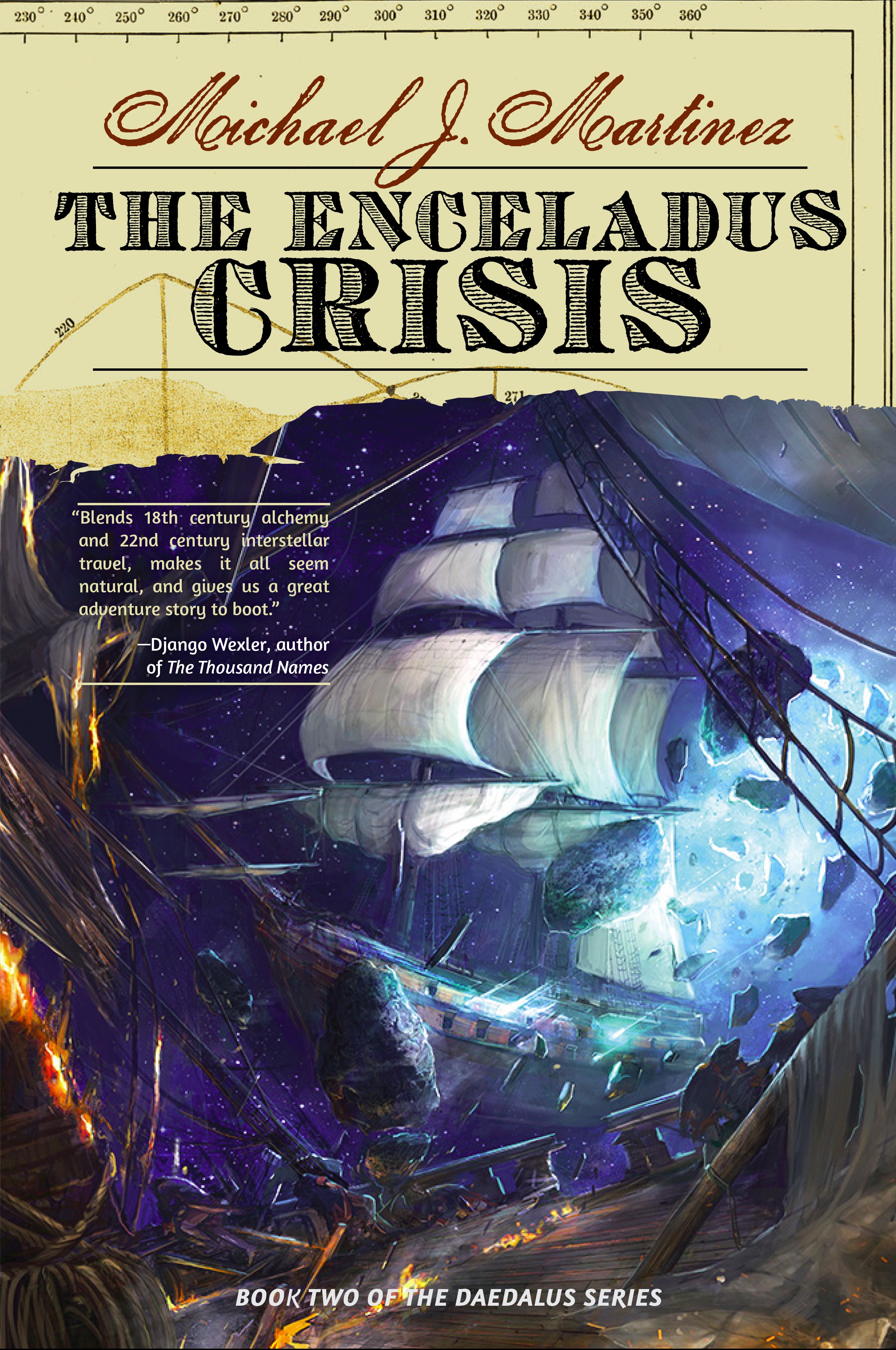 The path to publication for The Enceladus Crisis was a lot easier this time around, so there are fewer updates to make here. However, I really want to thank Django Wexler for not only agreeing to read the book early on, but also for saying such great things about it for the cover. Django is an excellent author, and you should be reading his stuff.
