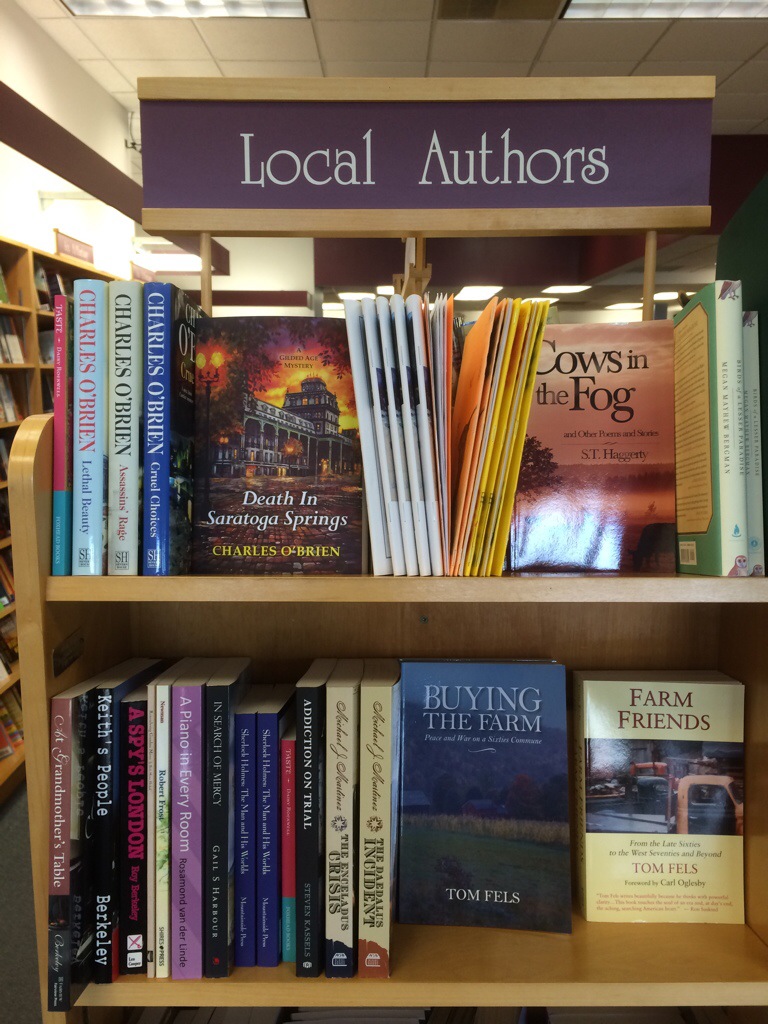 So when I get to return, such as this past weekend to visit my mom, I get a little blissed out. And this time, Vermont laid out a bit of a welcome mat. The picture here is of the Local Authors shelf at the Bennington Bookshop, where I bought many a book in my youth. Even though I’m not technically local anymore, you can see both The Daedalus Incident and The Enceladus Crisis there on the second shelf. And that brought me joy.